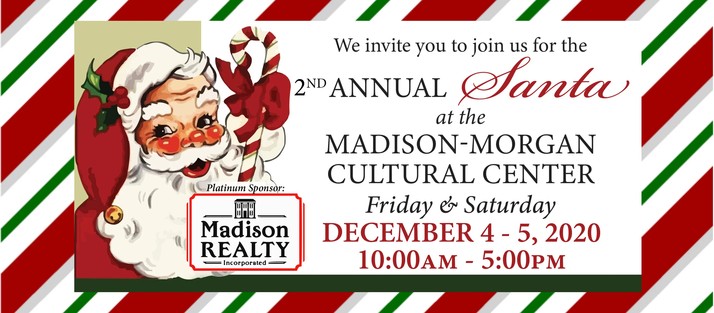 The Madison-Morgan Cultural Center wants to provide your family a tradition of magical holiday memories that will last a lifetime. So, skip the long lines and crowded mall parking lots and join us at the Cultural Center for a fun, easy and enjoyable Santa photo experience.
